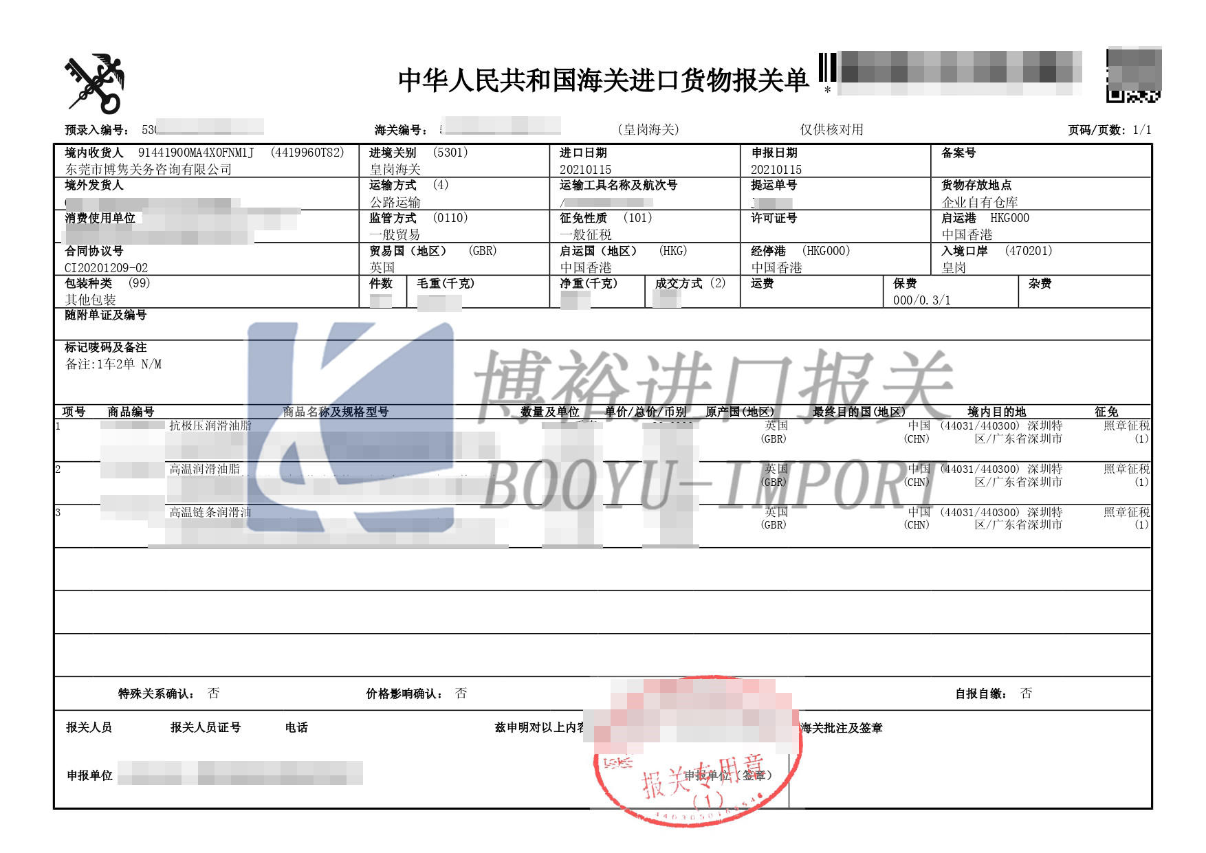 抗極壓潤滑油脂進口關稅稅率:10%