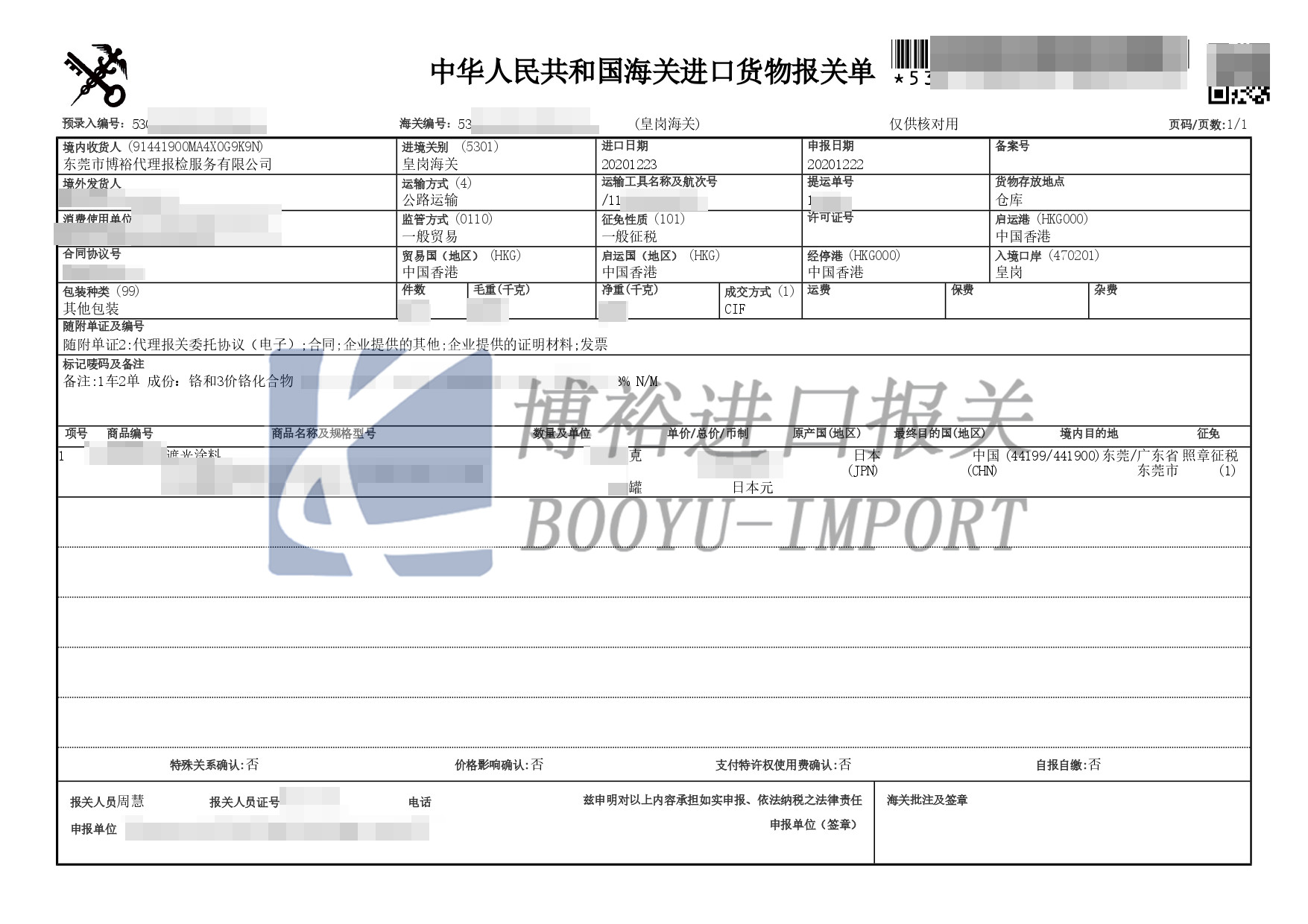 1、遮光涂料發貨前必須做好涂料備案書和危險品分類鑒定報告,完成后才可以發貨。或者在貨物到港前完成也可以。因為需要拿到這些資料才可以報關報檢。